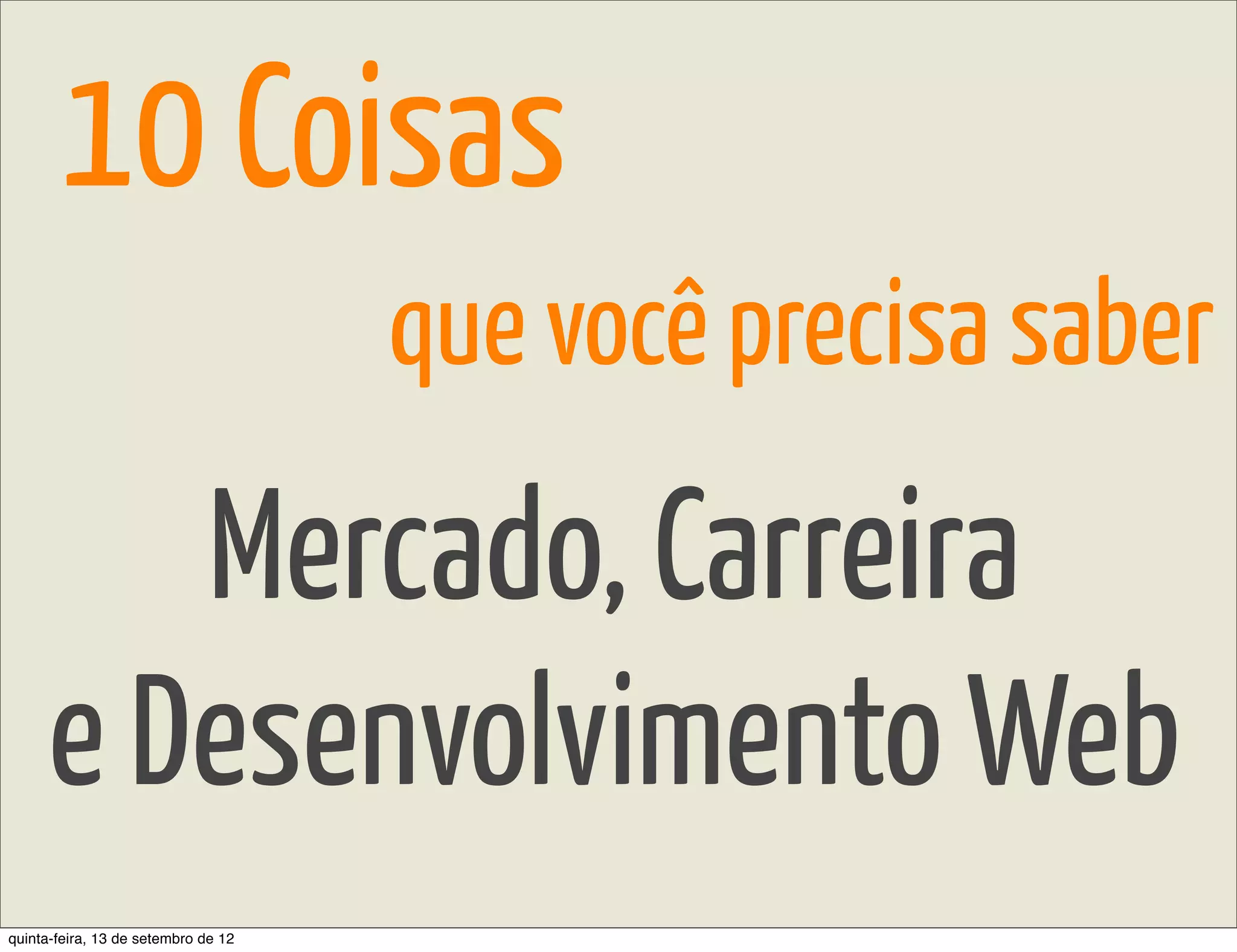 O documento fornece 10 dicas para desenvolvimento web, incluindo a importância de casos reais sobre diplomas, sacrificar horas de lazer para projetos, e começar projetos consumíveis a cada ano.