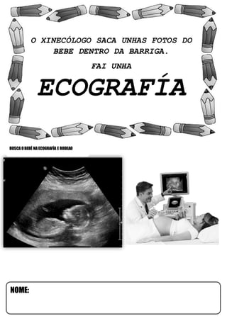 O médico realizou uma ultrassonografia na barriga da mãe para tirar fotos do bebê ainda dentro do útero. Ele usou um equipamento de ultrassom para localizar o bebê e capturar imagens durante o exame.