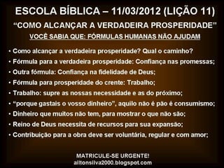 O documento discute as relações entre Israel e a Igreja, afirmando que ambos fazem parte do plano de salvação de Deus, embora a Igreja tenha aberto as portas para os gentios de uma forma que Israel não havia feito. A prosperidade verdadeira é espiritual, não material. A Igreja deve adorar a Deus, ensinar e proclamar o evangelho.