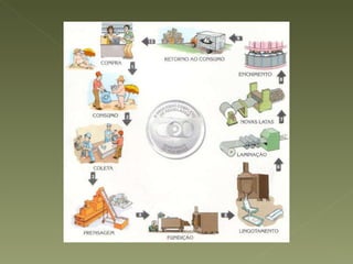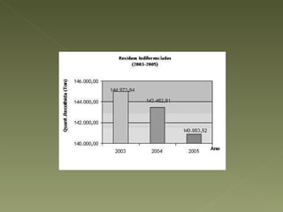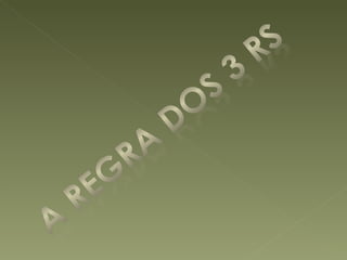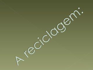 Este documento discute a importância da reciclagem para proteger o meio ambiente. Explica que em Portugal existem contentores para separar diferentes tipos de lixo como papel, vidro, plástico e metal. Também descreve os 3 Rs - Reduzir, Reutilizar e Reciclar - como formas de reduzir o impacto do lixo. Informa que a quantidade de resíduos reciclados em Portugal aumentou cerca de 15% no último ano.
