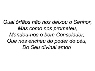 O documento fala sobre a promessa de Jesus de enviar o Espírito Santo como Consolador após Sua ascensão. Ele enfatiza a importância de receber a "unção real" do Espírito Santo para ser usado por Deus na salvação de outras pessoas.