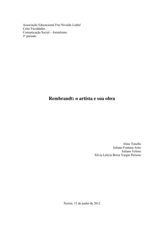 Rembrandt nasceu na Holanda no século XVII e se tornou um dos mais famosos pintores da época. Ele é conhecido por suas pinturas realistas, retratos e cenas bíblicas, além de dominar a técnica de luz e sombra para direcionar a atenção do observador. Rembrandt passou por dificuldades financeiras no fim da vida, mas continuou produzindo obras influenciadas pelo realismo e tons escuros. Suas pinturas ainda inspiram artistas atualmente.