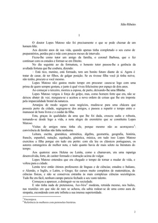 1) O documento apresenta a história de Lenita, uma mulher culta e independente cujo pai e marido morreram. Ela vai morar na fazenda do seu antigo tutor para se isolar e lidar com a dor.