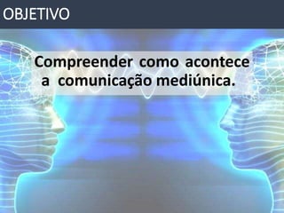 O documento descreve o mecanismo da comunicação mediúnica ocorrendo em 4 fases: 1) sintonia dos pensamentos entre médium e espírito, 2) afinidade fluídica, 3) aproximação do comunicante, e 4) aceitação do comunicante pelo médium. A comunicação envolve a troca de vibrações mentais e fluídicas entre as partes para estabelecer uma ligação.