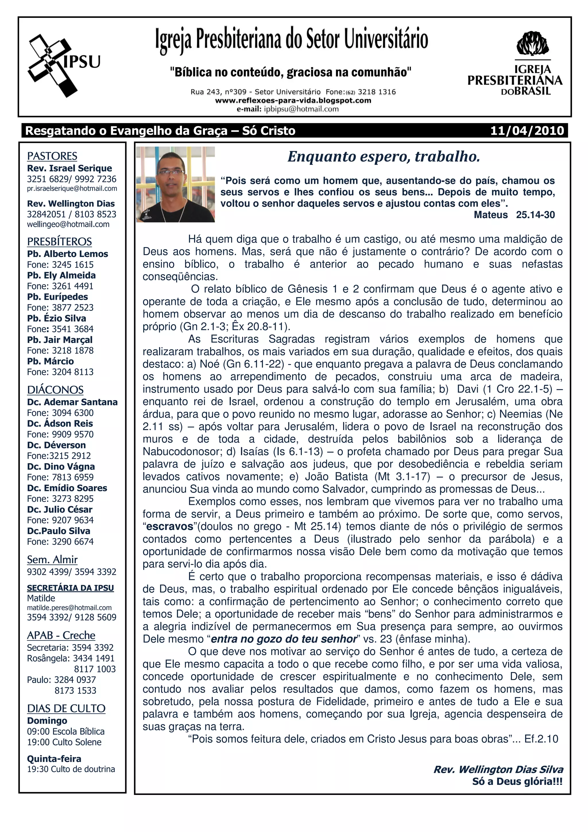 1) O trabalho é ordenado por Deus e não é uma maldição, mas sim uma forma de servir a Deus e ao próximo.