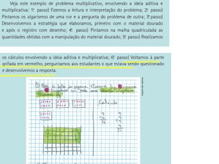Este documento discute estratégias de leitura e resolução de problemas matemáticos no 1o ano do ensino fundamental. Ele enfatiza a importância de situar operações matemáticas em contextos de problemas reais e de desenvolver compreensão conceitual, não apenas habilidades algorítmicas. Também destaca a necessidade de mediação do professor para ensinar estratégias de leitura específicas para a matemática.