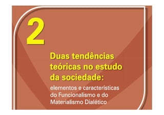 3) Aborda diferentes perspectivas sociológicas como funcionalismo, materialismo dialético e liberalismo e suas visões sobre educação.