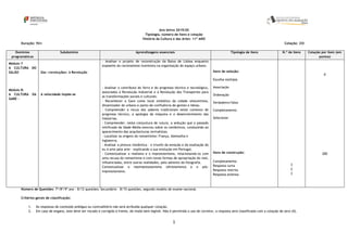 Este documento descreve a prova de História da Cultura e das Artes do 11o ano, incluindo os domínios programáticos, aprendizagens essenciais, tipologias de itens, número de itens e critérios de classificação. A prova terá uma duração de 90 minutos e uma cotação máxima de 200 pontos, incluindo itens de escolha múltipla, associação, ordenação e construção sobre temas como o romantismo e o realismo.