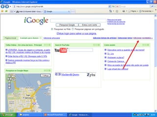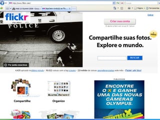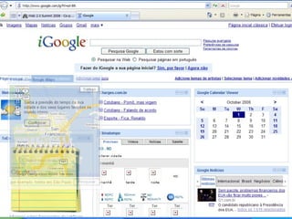 O documento discute o design de interfaces na Web 2.0, mencionando a evolução das interfaces desde Doug Engelbart, as teorias de McLuhan, Lévy e Anderson sobre a Web 2.0, e os paradigmas de conteúdo participativo e personalização nessa nova geração da internet.