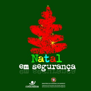 O documento fornece orientações sobre como escolher brinquedos e decorações de Natal de forma segura, destacando a importância de verificar as características de segurança dos produtos. Recomenda-se atenção especial a brinquedos para crianças menores de 3 anos, instruções de uso e vigilância durante a brincadeira. Além disso, menciona cuidados ao instalar iluminações natalinas, enfatizando a necessidade de garantir a conformidade com normas de segurança para evitar acidentes.