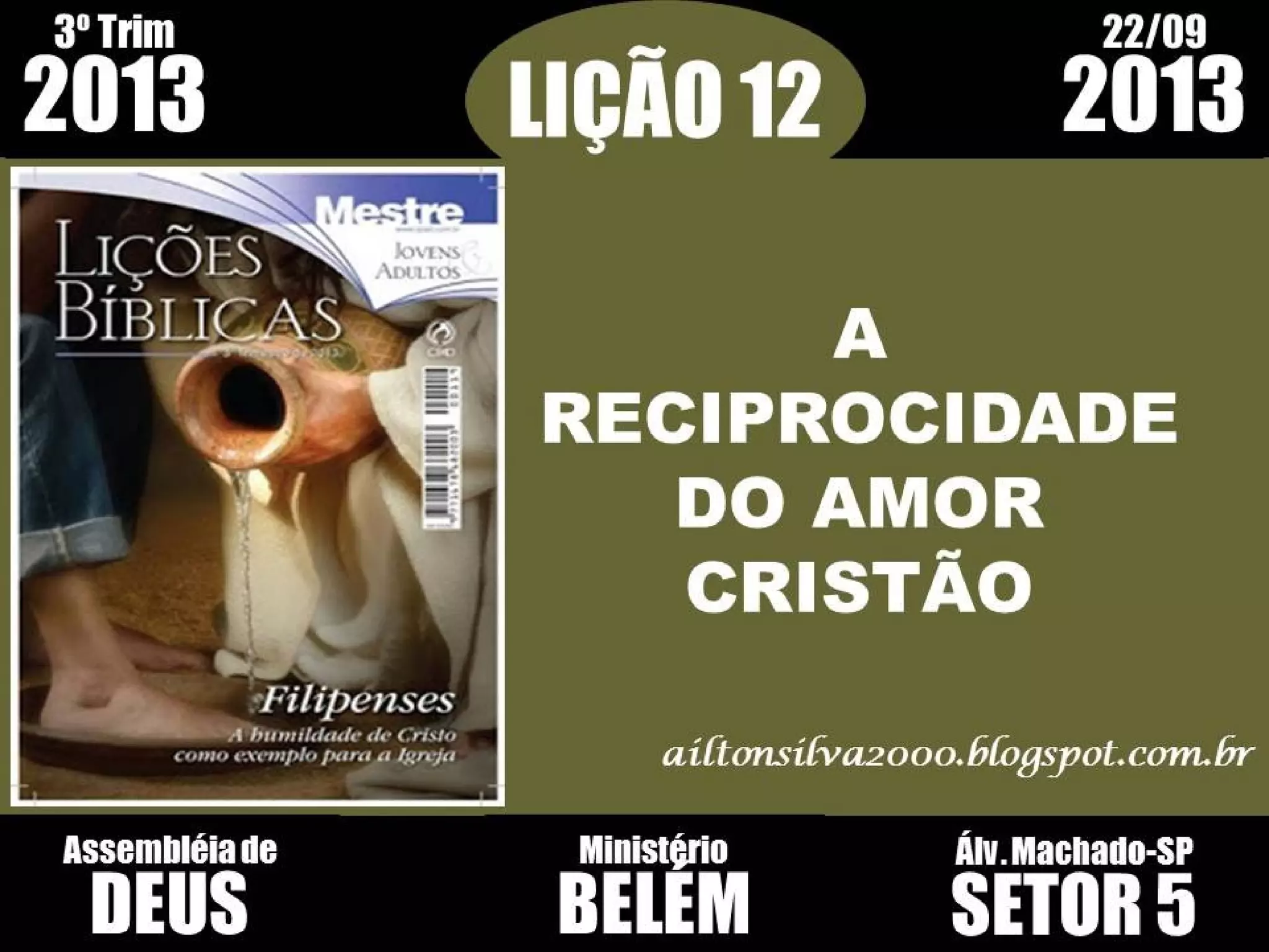 Contato: ailtonsilva2000 @yahoo.com.br @gmail.com .blogspot.com facebook Álvares Machado(SP) 3º trim. 2013 ESCOLA BÍBLICA DOMINICAL Igreja Evangélica Assembleia de Deus Ministério Belém – Setor 5 – Álvares Machado Campo de Presidente Prudente - SP