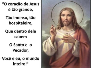 O documento descreve as aparições de Jesus a Santa Margarida Maria Alacoque e as 12 promessas feitas a quem venera o Sagrado Coração de Jesus, incluindo a promessa de dar graças necessárias ao estado de vida dos devotos, estabelecer a paz nas famílias e lançar bênçãos sobre seus trabalhos.