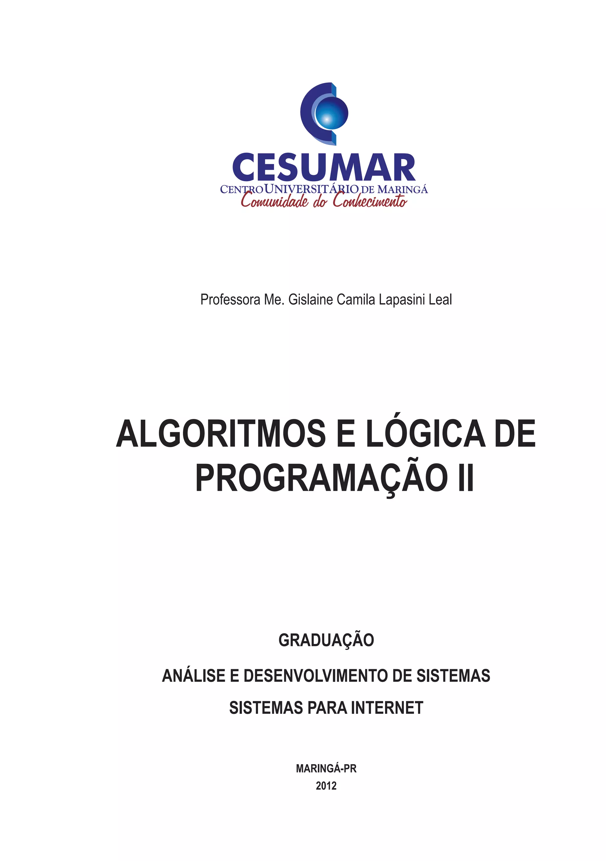 O documento apresenta o livro "Algoritmos e Lógica de Programação II" que ensina a linguagem C. É dividido em 5 unidades que cobrem: 1) Conceitos iniciais de C e programação, 2) Estruturas condicionais, 3) Estruturas de repetição, 4) Estruturas de dados e strings, 5) Funções e arquivos. Cada unidade contém exemplos de programação para que os alunos aprendam na prática a linguagem C.