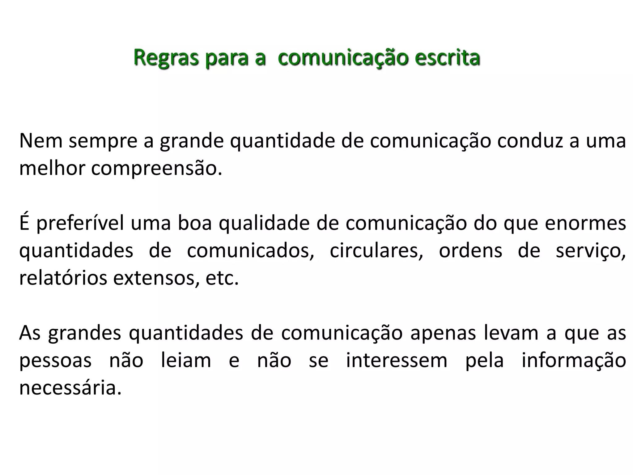 Este documento fornece diretrizes para comunicação escrita eficiente. Recomenda-se que as comunicações sejam concisas com frases curtas, parágrafos numerados e esquematizados, evitando grandes quantidades de texto. Circulares, atas, ofícios e faxes devem seguir estas diretrizes de clareza, objetividade e brevidade.