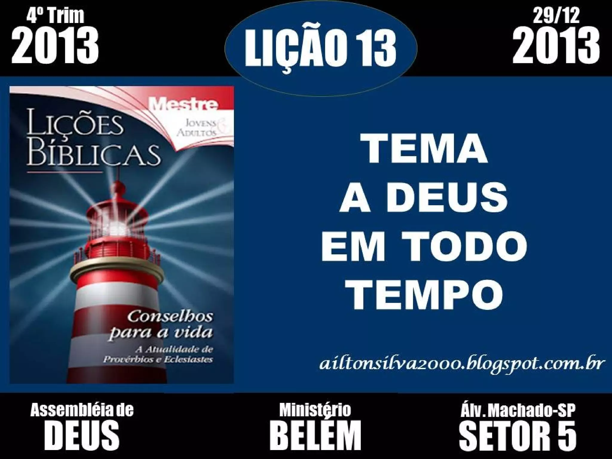 • Conselho de Salomão: tema a Deus em todo o tempo.