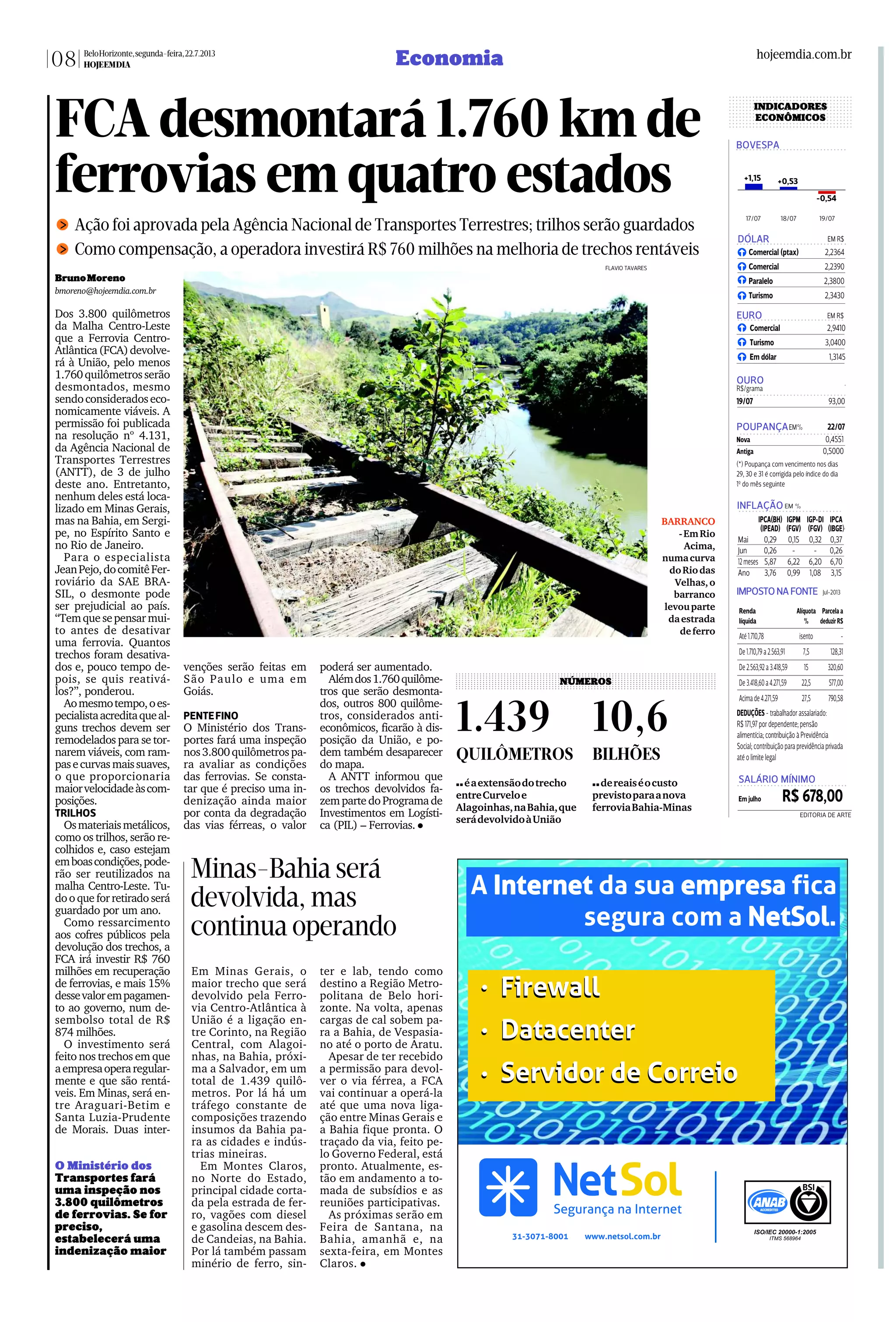 O documento discute a devolução de trechos da Ferrovia Centro-Atlântica à União, incluindo o maior trecho entre Corinto em Minas Gerais e Alagoínhas na Bahia com 1.439 quilômetros. A FCA continuará operando os trechos até que uma nova ferrovia entre os estados esteja pronta, e fará investimentos para melhorar outras linhas como compensação. Trechos considerados não rentáveis poderão ser desativados.