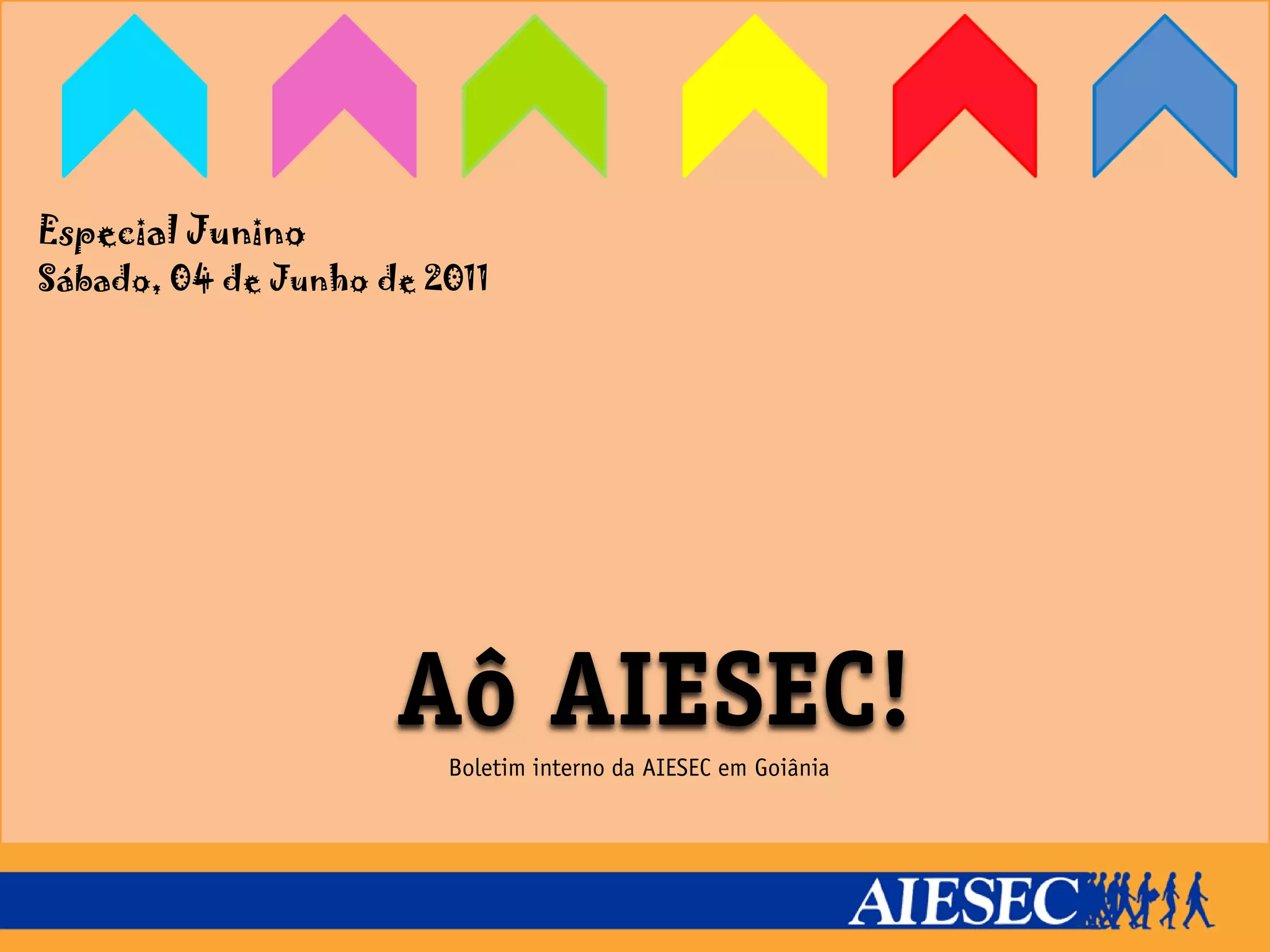 [1] No sábado, 04 de junho de 2011, a AIESEC Goiânia promoveu o Especial Junino, um evento voltado para a troca de experiências sobre intercâmbios.