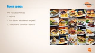 O documento discute festivais gastronômicos como o SP Burger Fest e seus benefícios. O SP Burger Fest promove hambúrgueres de restaurantes em São Paulo e teve três edições com aumento no número de restaurantes participantes, hambúrgueres vendidos e receita. O festival gera divulgação para os restaurantes, atração de novos clientes e apoio a projetos sociais.