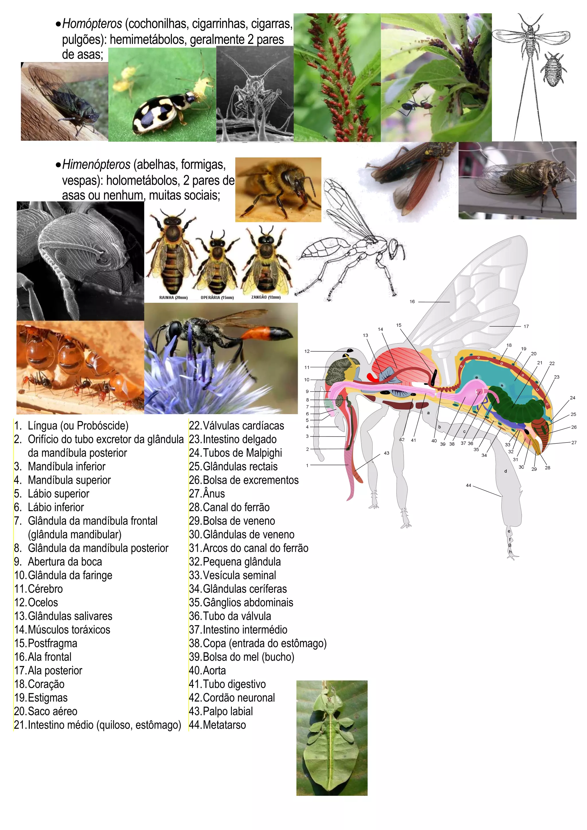 1. O documento descreve as características de diferentes grupos de insetos e crustáceos, incluindo suas estruturas, hábitos de vida e tipos de metamorfose.