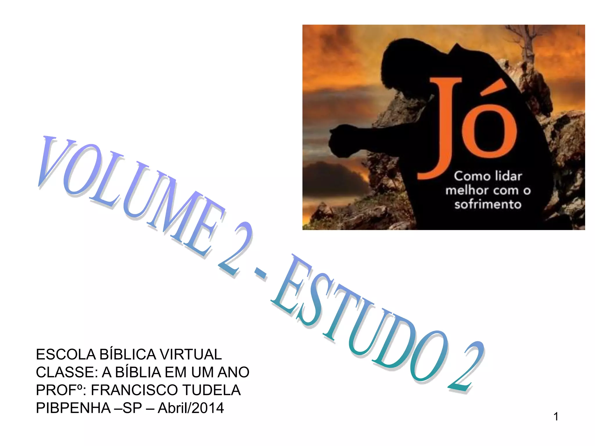 O documento resume uma aula bíblica sobre o livro de Jó. Apresenta o contexto da história de Jó e sua provação, as reações de sua esposa e amigos, e os argumentos destes de que Jó deve ter pecado para merecer tanto sofrimento. Discute também a estrutura literária do livro e o objetivo de questionar a teologia da retribuição, que relacionava o sofrimento ao pecado.