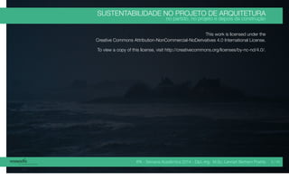 O documento aborda a sustentabilidade na arquitetura, destacando a necessidade de equilibrar recursos e necessidades na construção. São discutidos conceitos como o paradoxo entre a redução de impacto e a funcionalidade arquitetônica, além da importância de integrar estratégias de desempenho energético no processo de design. Conclui-se que a arquitetura nunca será totalmente sustentável, mas é vital otimizar processos e usar ferramentas de simulação desde o início do projeto.