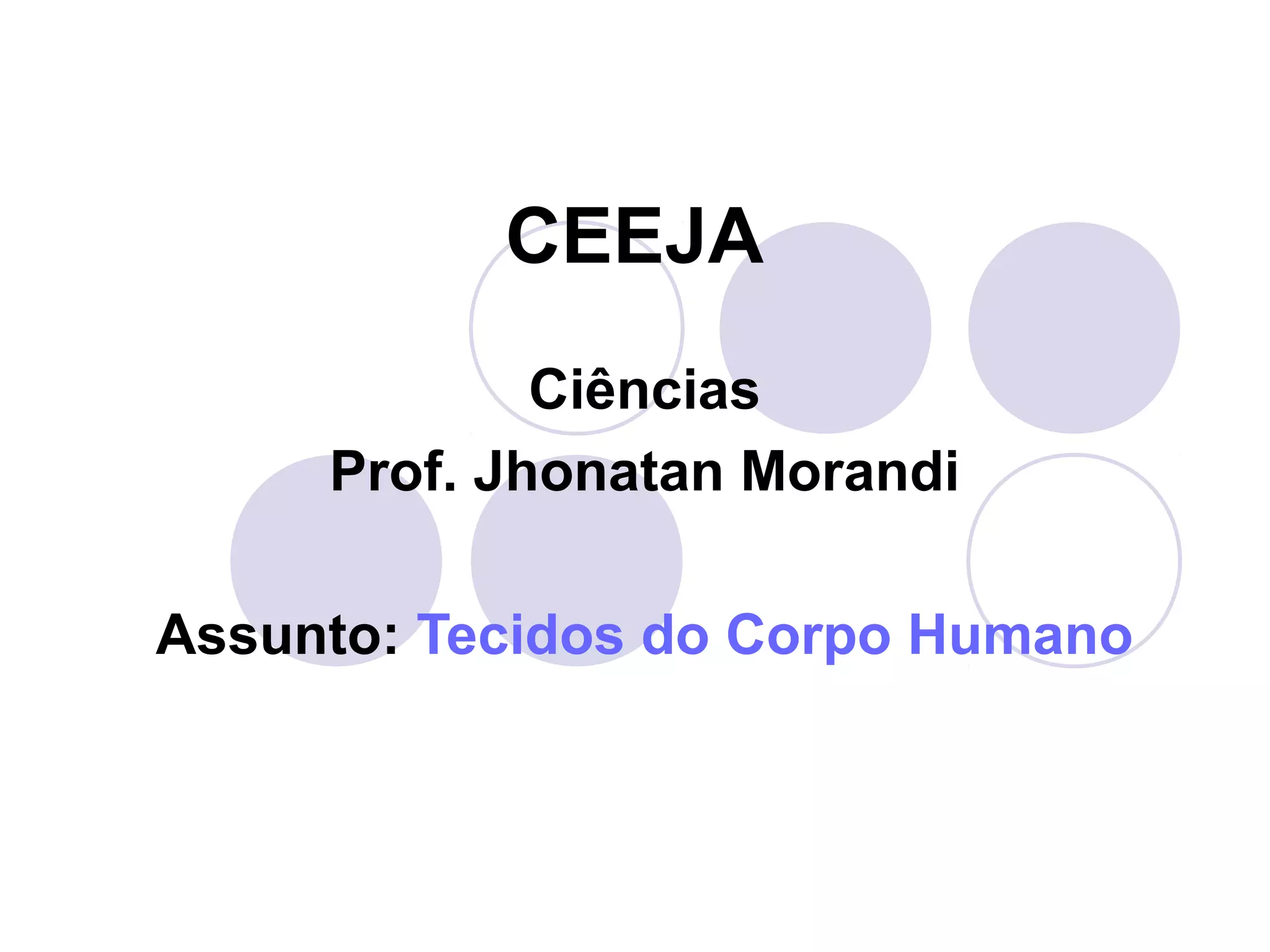 O documento descreve os principais tipos de tecidos do corpo humano, incluindo tecido epitelial, conjuntivo, muscular e nervoso. O tecido epitelial reveste e protege o corpo, enquanto o tecido conjuntivo une e sustenta os órgãos. O tecido muscular promove a contração e movimento e o tecido nervoso conduz sinais pelo corpo. Cada tecido é composto de células especializadas e desempenha funções vitais para o funcionamento do organismo.