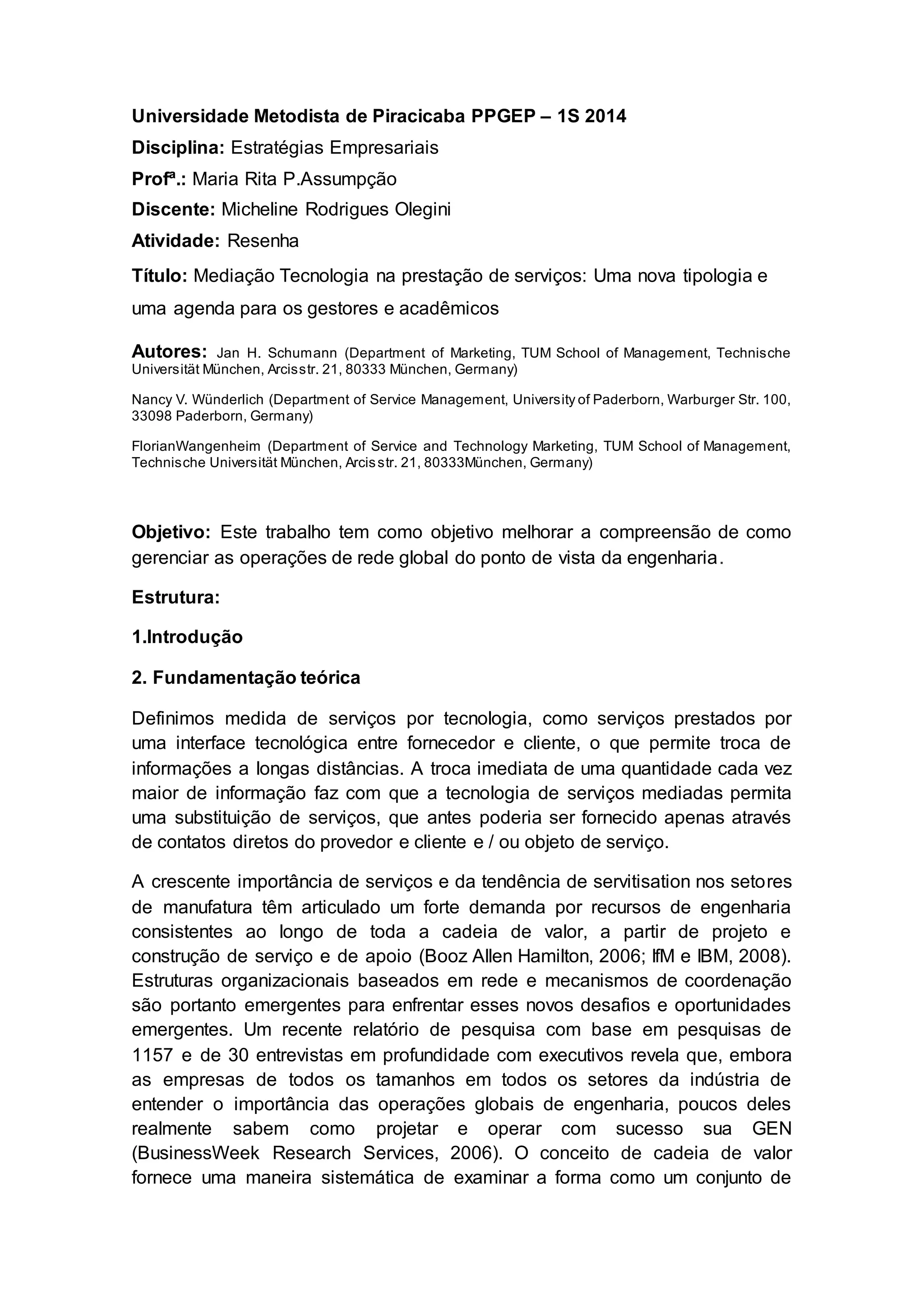 2) É apresentada uma tipologia de serviços mediados por tecnologia e como a tecnologia permite a prestação de serviços a longas distâncias.