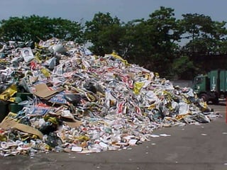 O documento discute o que é a reciclagem, por que devemos reciclar e quais materiais podem ser reciclados, incluindo vidro, plástico, papel e pilhas. A reciclagem é o processo de reaproveitar materiais para nova utilização, poupando recursos naturais e financeiros e aumentando a vida útil dos aterros sanitários.
