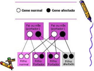 O documento discute três sistemas de determinação do sexo em seres vivos (X0, ZW e Z0) e o sistema XY encontrado em mamíferos, incluindo seres humanos. Apresenta as diferenças entre machos e fêmeas em cada sistema e explica os tipos de herança genética - ligada ao sexo, restrita ao sexo e influenciada pelo sexo.