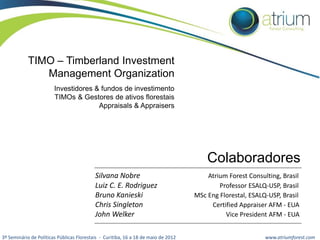 O 3º Seminário de Políticas Públicas Florestais em Curitiba discutiu a evolução dos investimentos florestais, destacando a transformação do setor desde os anos 70 até o crescimento das Timber Investment Management Organizations (TIMOs). O evento também abordou a estrutura do mercado, o papel dos investidores, como fundos de pensão e doações, e as metodologias de avaliação de ativos florestais. Por fim, discutiu as tendências de amadurecimento do mercado e a crescente importância das florestas como investimentos financeiros.
