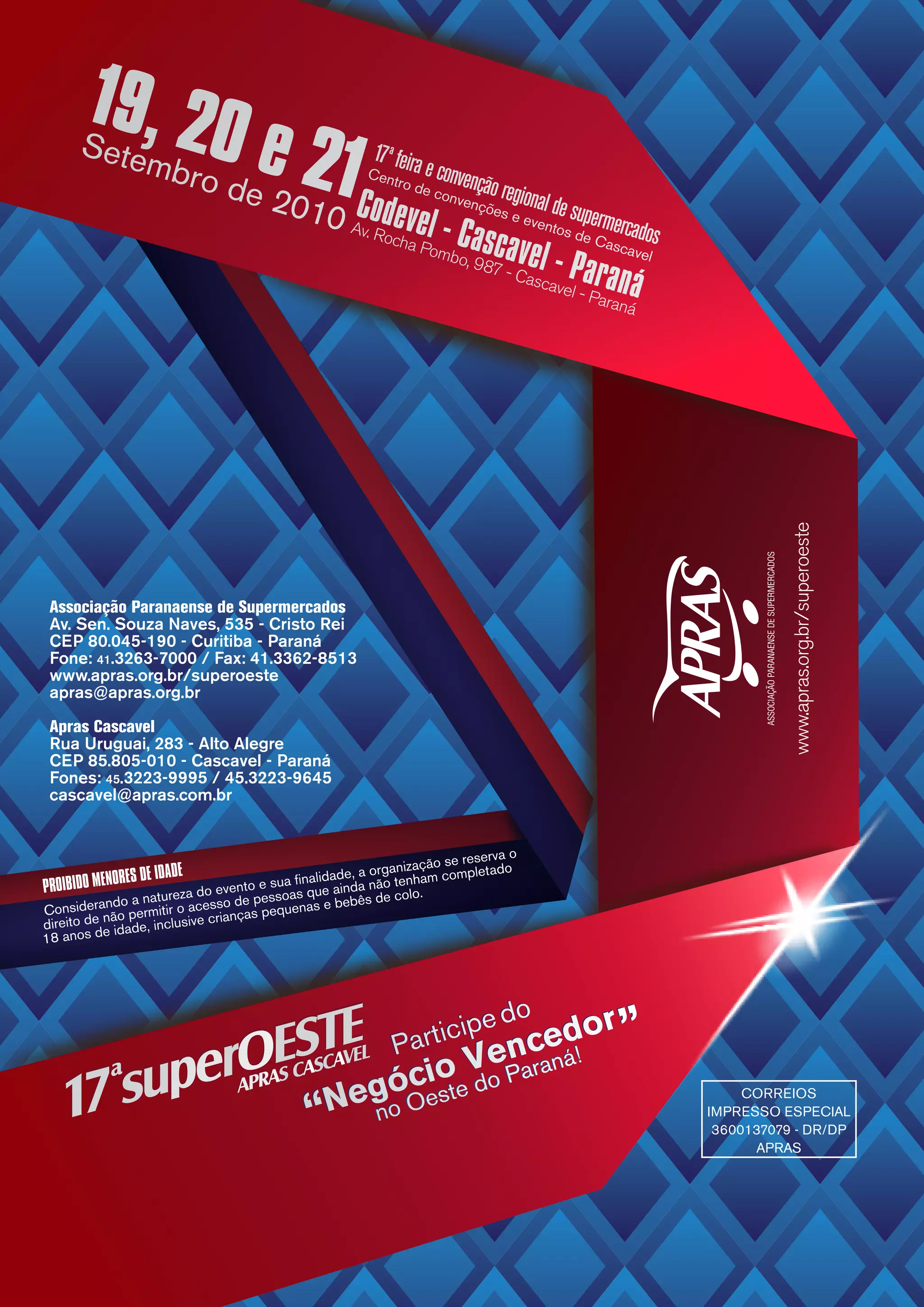 Este documento fornece informações sobre a 17a Feira e Convenção Regional de Supermercados organizada pela Apras que ocorrerá em Cascavel entre os dias 19 a 21 de setembro de 2010 no Centro de Convenções e Eventos. O evento espera reunir cerca de oito mil visitantes e fechar negócios de quase R$ 60 milhões. O documento também traz detalhes sobre a programação e como se inscrever no evento.