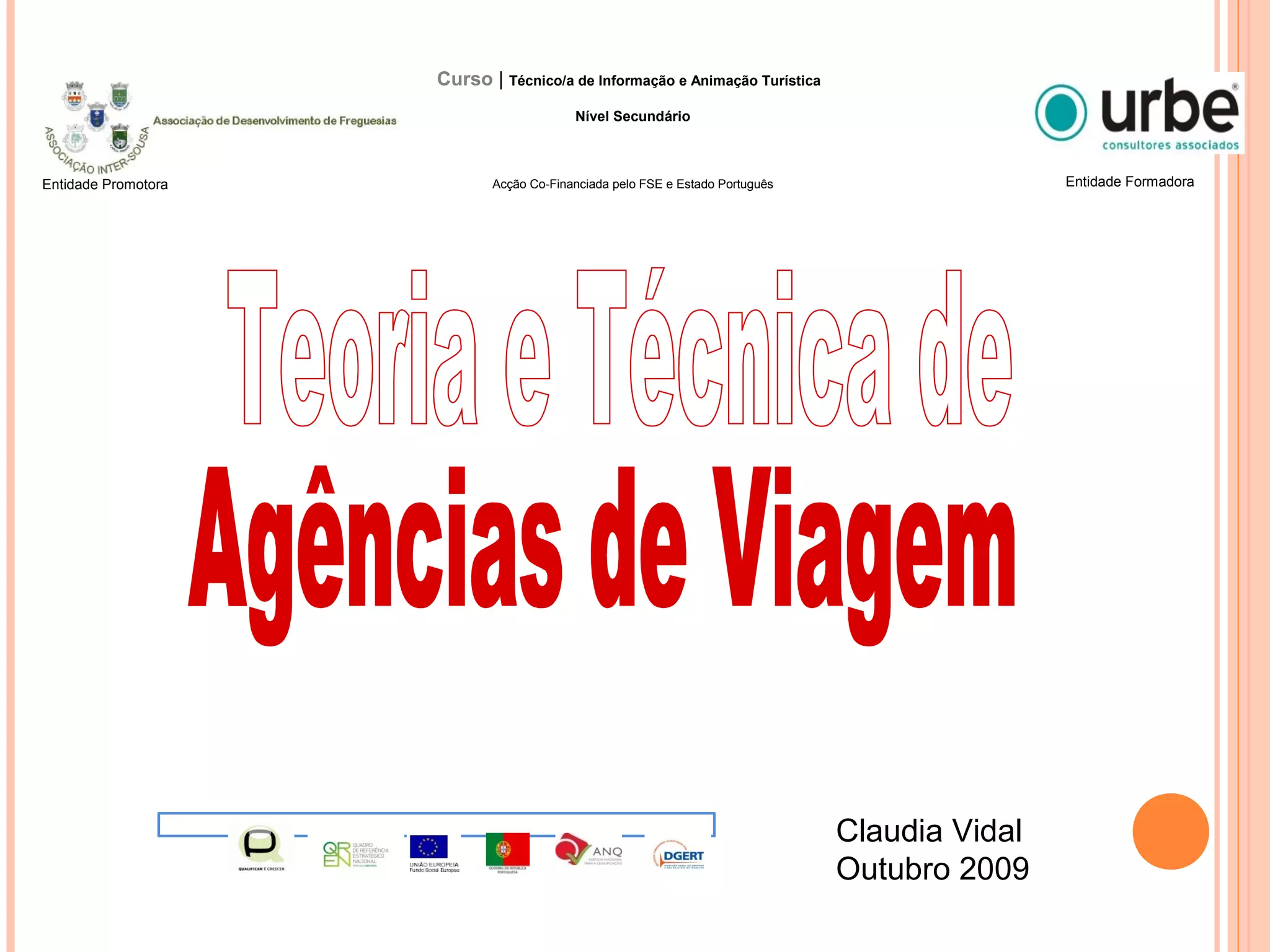 O documento descreve as características e funções principais das agências de viagens. As agências de viagens trabalham com vários produtores turísticos para completar os serviços solicitados pelos clientes, finalizam o processo de distribuição e vendem produtos diretamente aos consumidores. Elas também aconselham clientes, fazem reservas, fornecem documentação e lidam com reclamações.