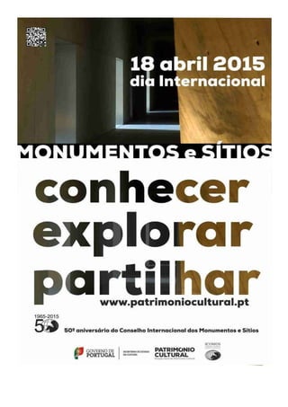 Este documento descreve o regulamento de um concurso de fotografia sobre monumentos históricos portugueses para comemorar o Dia Internacional dos Monumentos e Sítios. O concurso convida a comunidade escolar a enviar selfies tiradas em locais históricos com um título descritivo.
