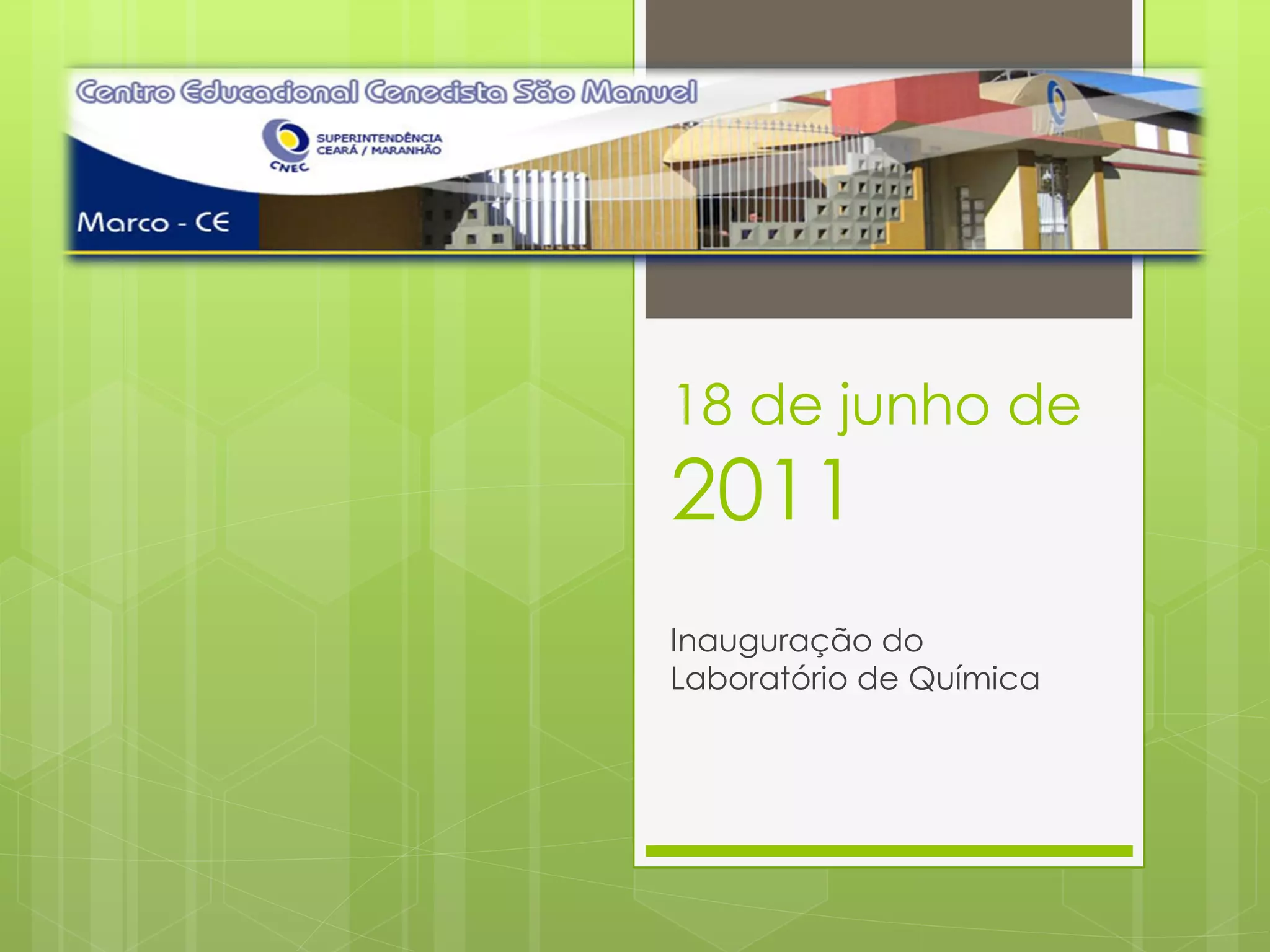 O documento descreve a inauguração de um laboratório de química, incluindo: 1) o que é um laboratório de química e o que ocorre nele, 2) as normas de segurança necessárias como usar roupas e óculos de proteção, e 3) o dia do químico é comemorado em 18 de junho.