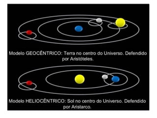 O documento descreve a formação do universo e do Sistema Solar. Segundo o texto, há bilhões de anos toda a matéria e energia do universo estava contida em um único ponto, que explodiu em uma expansão chamada Big Bang. Essa expansão formou galáxias, estrelas, nebulosas e sistemas planetários, incluindo o Sistema Solar. O texto também aborda os movimentos da Terra, as fases da Lua e os diferentes corpos celestes do Sistema Solar.