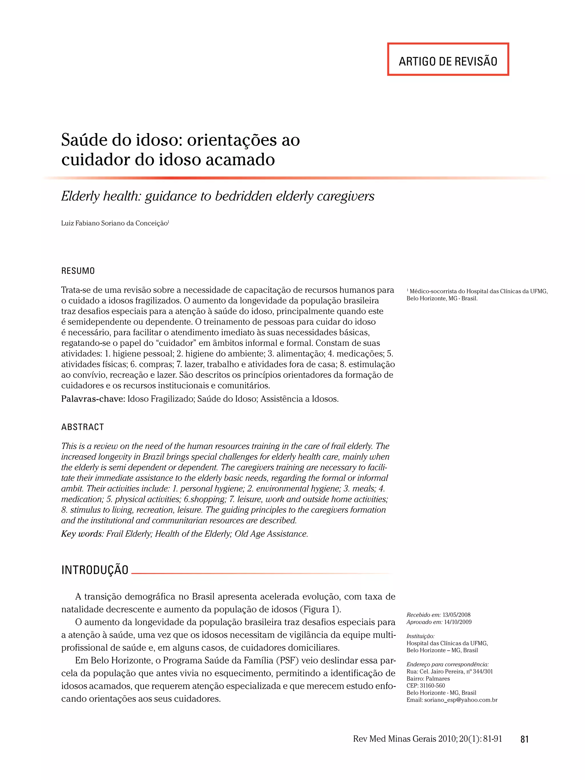 1) O artigo discute a necessidade de treinar cuidadores para cuidar de idosos acamados ou dependentes.
