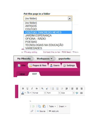 O documento descreve um projeto educacional envolvendo alunos do 1º ano do ensino médio do Colégio Estadual Tancredo de Almeida Neves, focado na conscientização sobre os impactos da pichação. Os alunos sugeriram desenvolver uma campanha contra a pichação, que inclui análise de propagandas e criação de materiais publicitários utilizando um ambiente virtual de aprendizagem. As atividades buscam promover a reflexão sobre as consequências sociais da pichação e incentivar a preservação do espaço escolar.