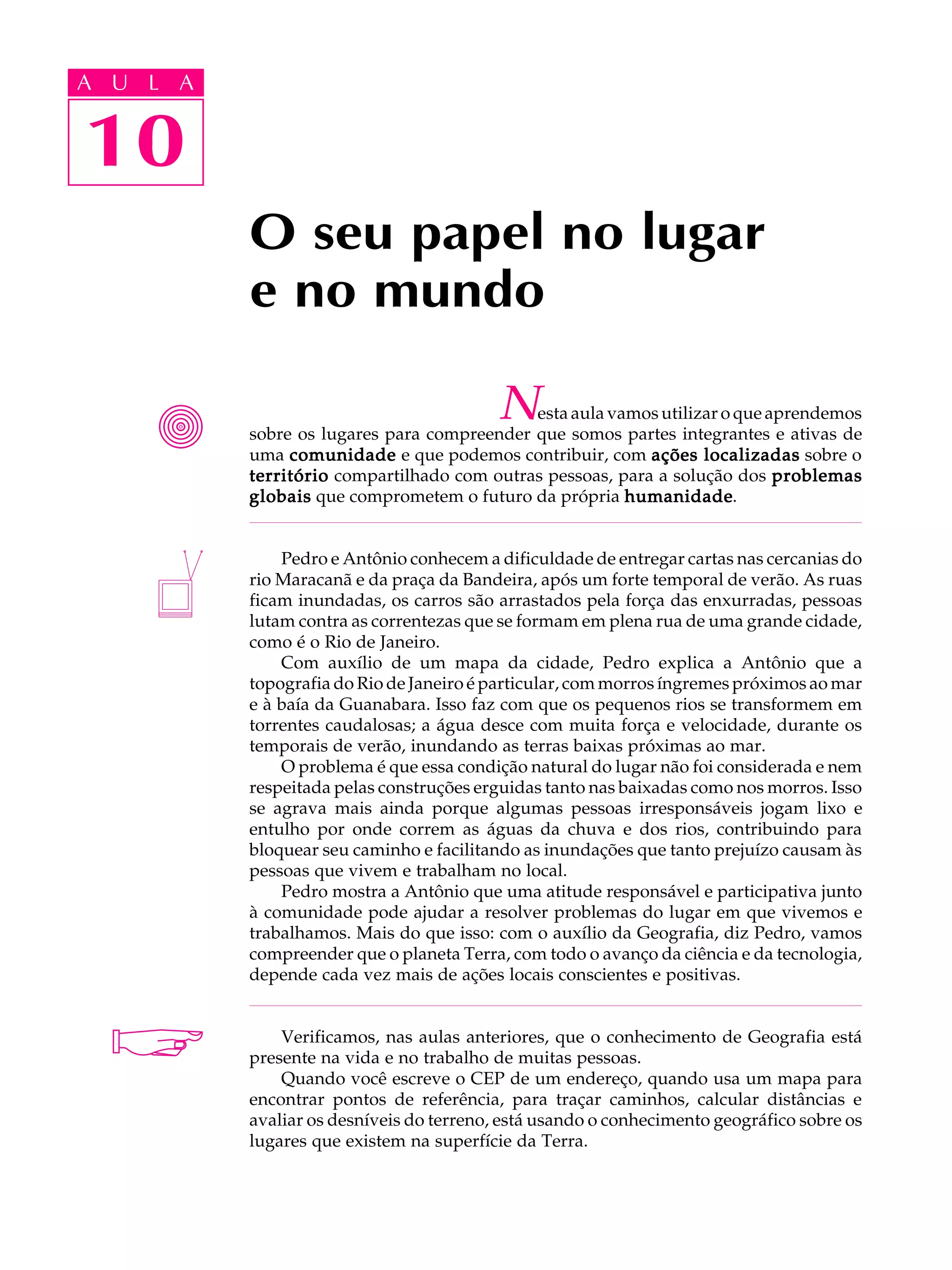 O documento discute como as pessoas são partes integrantes e ativas de suas comunidades locais e como podem contribuir para resolver problemas globais através de ações locais. Também aborda como o desenvolvimento dos meios de comunicação reduziu as distâncias entre os lugares e aumentou a consciência de pertencimento a uma comunidade nacional maior.
