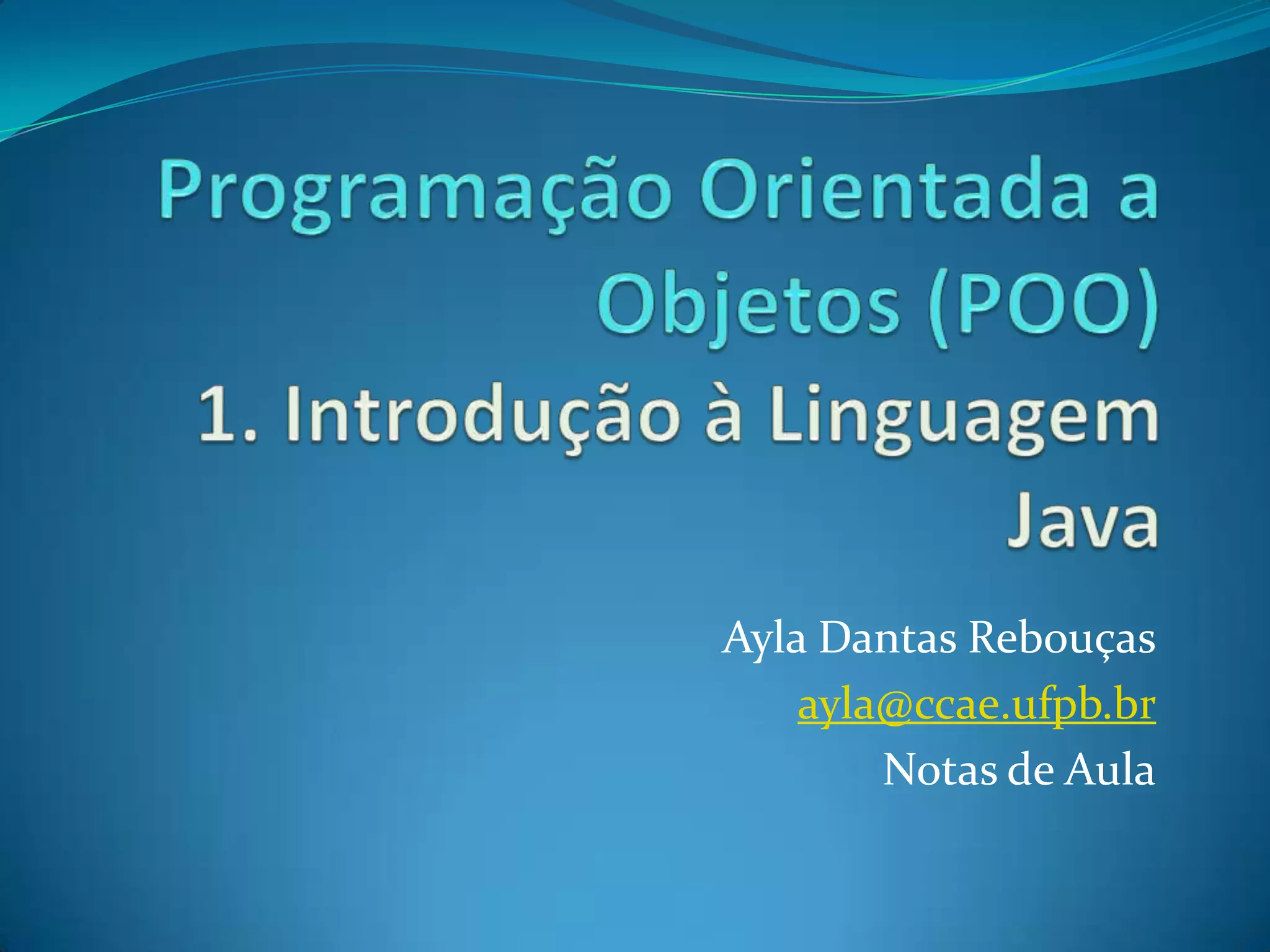 Programação Orientada aObjetos (POO)1. Introdução à Linguagem JavaAyla Dantas Rebouçasayla@ccae.ufpb.brNotas de Aula