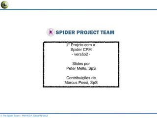 O documento apresenta um projeto desenvolvido pela Spider Management Technologies para fornecer uma versão gratuita de seu software Spider CPM, visando facilitar a criação de projetos. Inclui uma introdução à ferramenta com vídeos e slides que orientam os usuários na criação e gestão de cronogramas. O material aborda conceitos como dependências, caminhos críticos e criação de atividades, além de oferecer um acesso ao EAD gratuito para novos conteúdos.