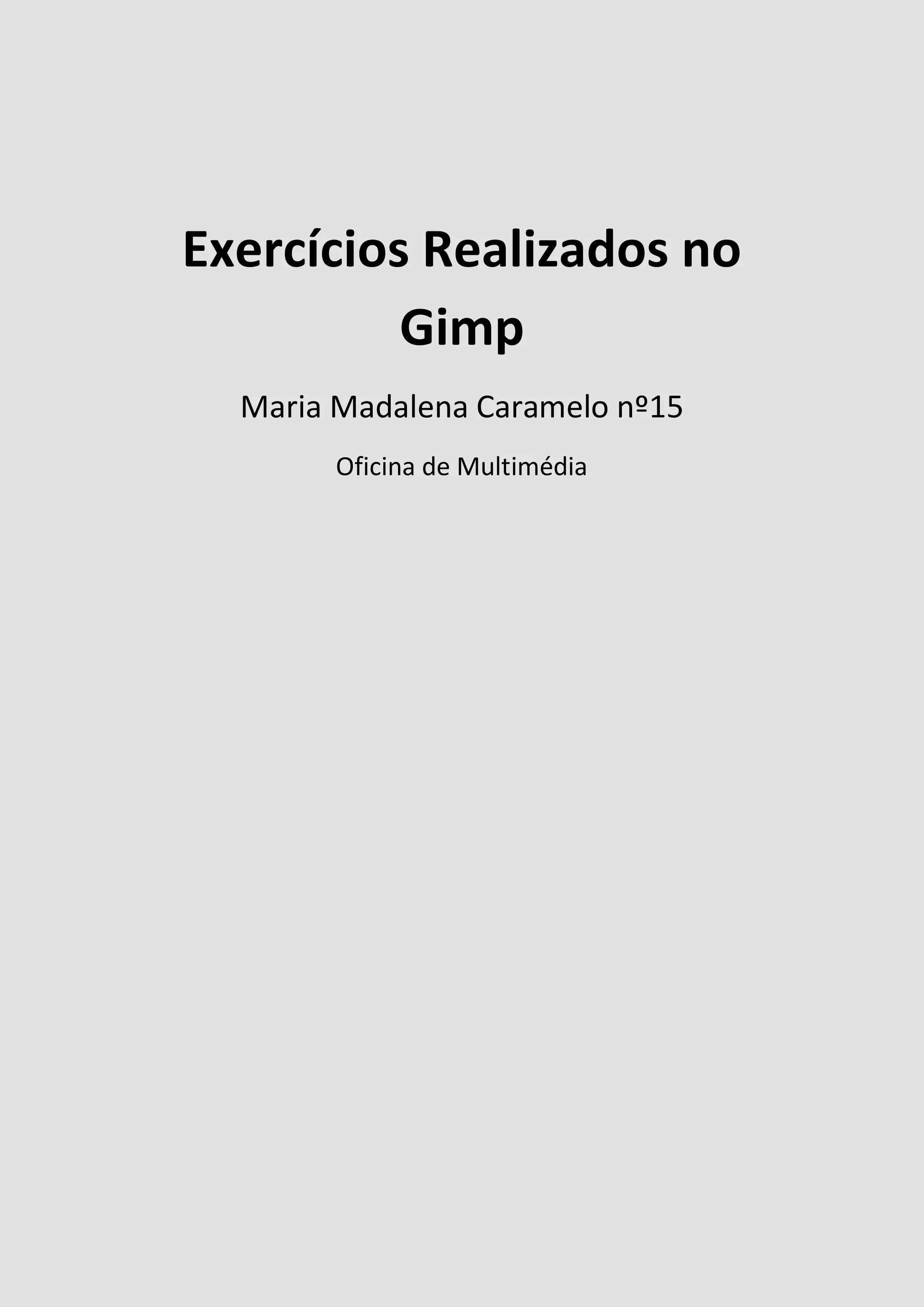 Este documento resume os exercícios realizados no programa GIMP por Madalena Caramelo, incluindo recortes, desfocagem, redimensionamento e adição de texto na imagem original de Picasso. Vários filtros foram aplicados como aguçar, nevoeiro, ruido visual e banda desenhada. Cores, saturação, posterização e transparências também foram experimentadas. A proposta final de Madalena enfatiza o uso de transparências e iluminação para dar harmonia à imagem.