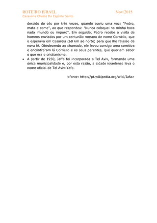 Jaffa é uma antiga cidade portuária de Israel, conhecida como uma das mais antigas do mundo. Foi famosa pelo seu porto antigo e centro histórico, de onde o profeta Jonas zarpou em direção a Társis segundo a Bíblia. A cidade também é importante no cristianismo, onde Pedro teria tido uma visão e recebido a visita de homens enviados por Cornélio.
