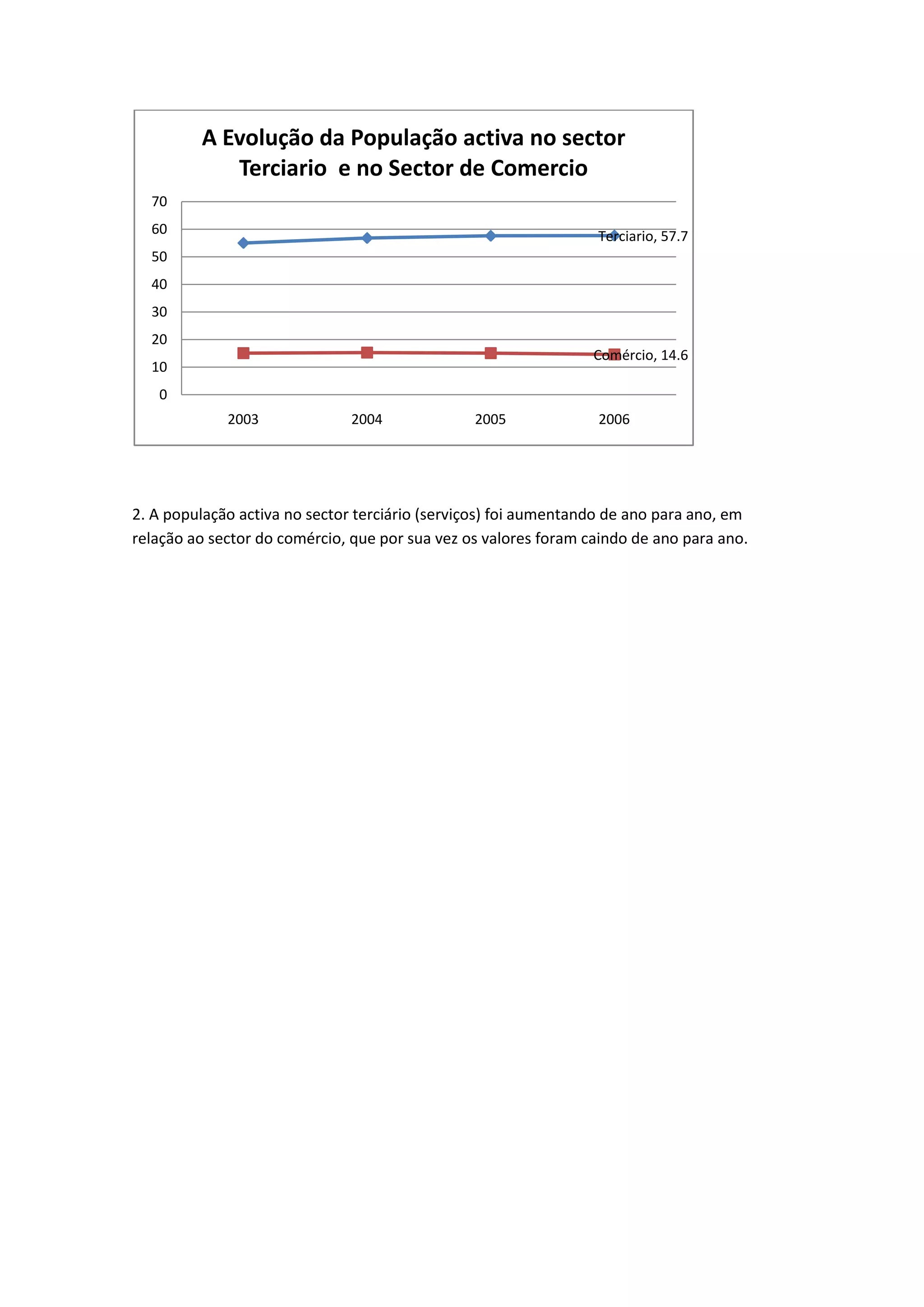 A população ativa no setor terciário de serviços aumentou de 2003 a 2006, enquanto a população ativa no setor de comércio diminuiu no mesmo período. Em 2006, 57,7% da população ativa trabalhava no setor terciário e 14,6% no setor de comércio.