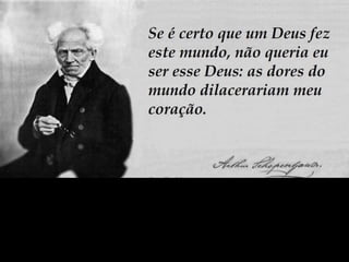 Arthur Schopenhauer foi um filósofo alemão do século XIX conhecido por seu pessimismo e por considerar a música a forma de arte mais elevada. Sua filosofia enfatizava o sofrimento inerente à vida e que o prazer verdadeiro só pode ser encontrado fora dos prazeres materiais. Ele também desenvolveu uma filosofia da música que via a música como capaz de expressar verdades filosóficas de maneira que a razão não pode compreender.
