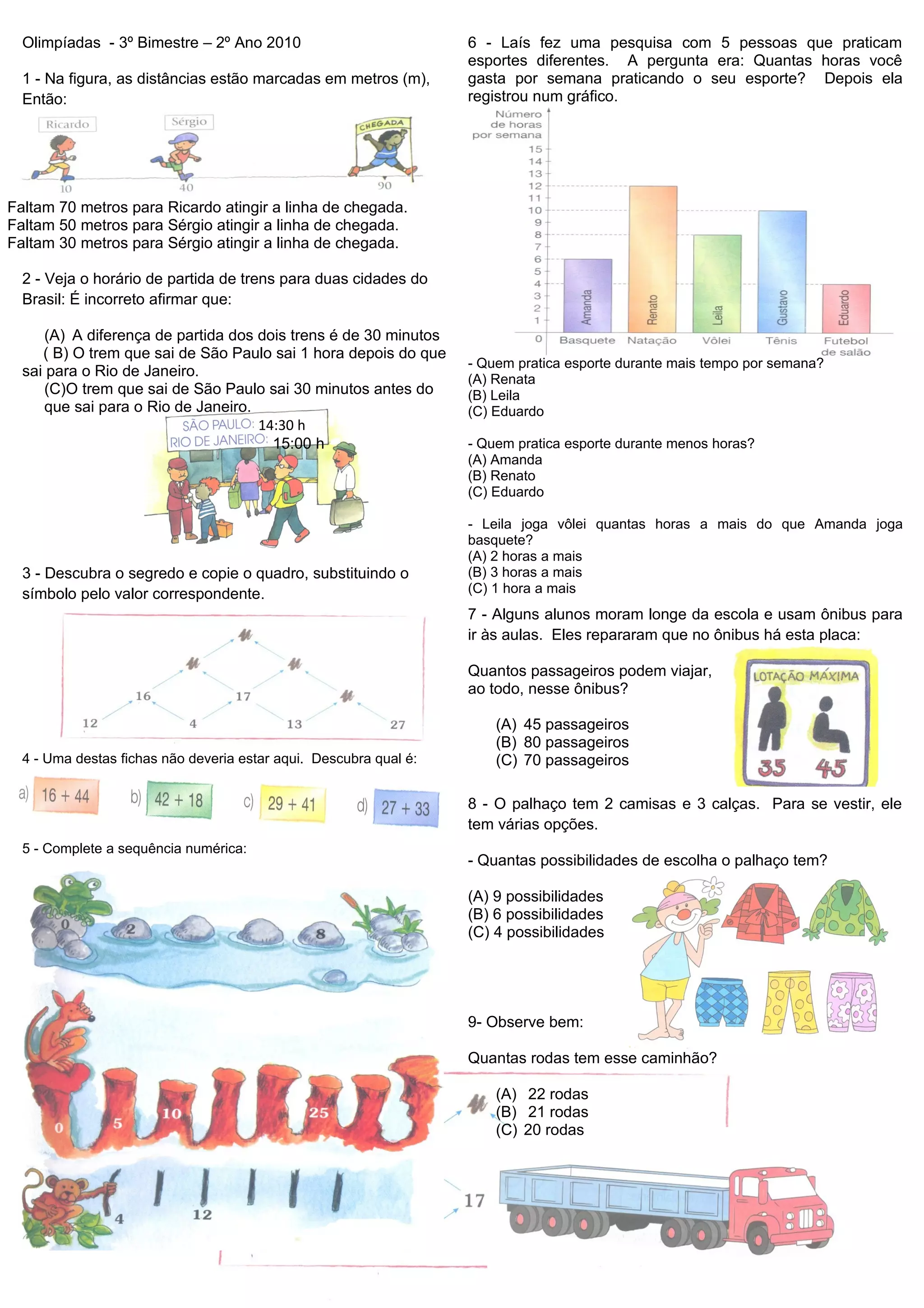 10 - Algunsbarcos estão participando de uma competição. 17 - Em uma rua, o número de cada casa é 8 unidades a