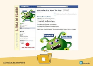 Este documento fornece dicas sobre segurança online e privacidade. Discute os riscos de senhas fracas, phishing, cyberbullying e vírus. Recomenda escolher senhas fortes e não compartilhar informações pessoais online.
