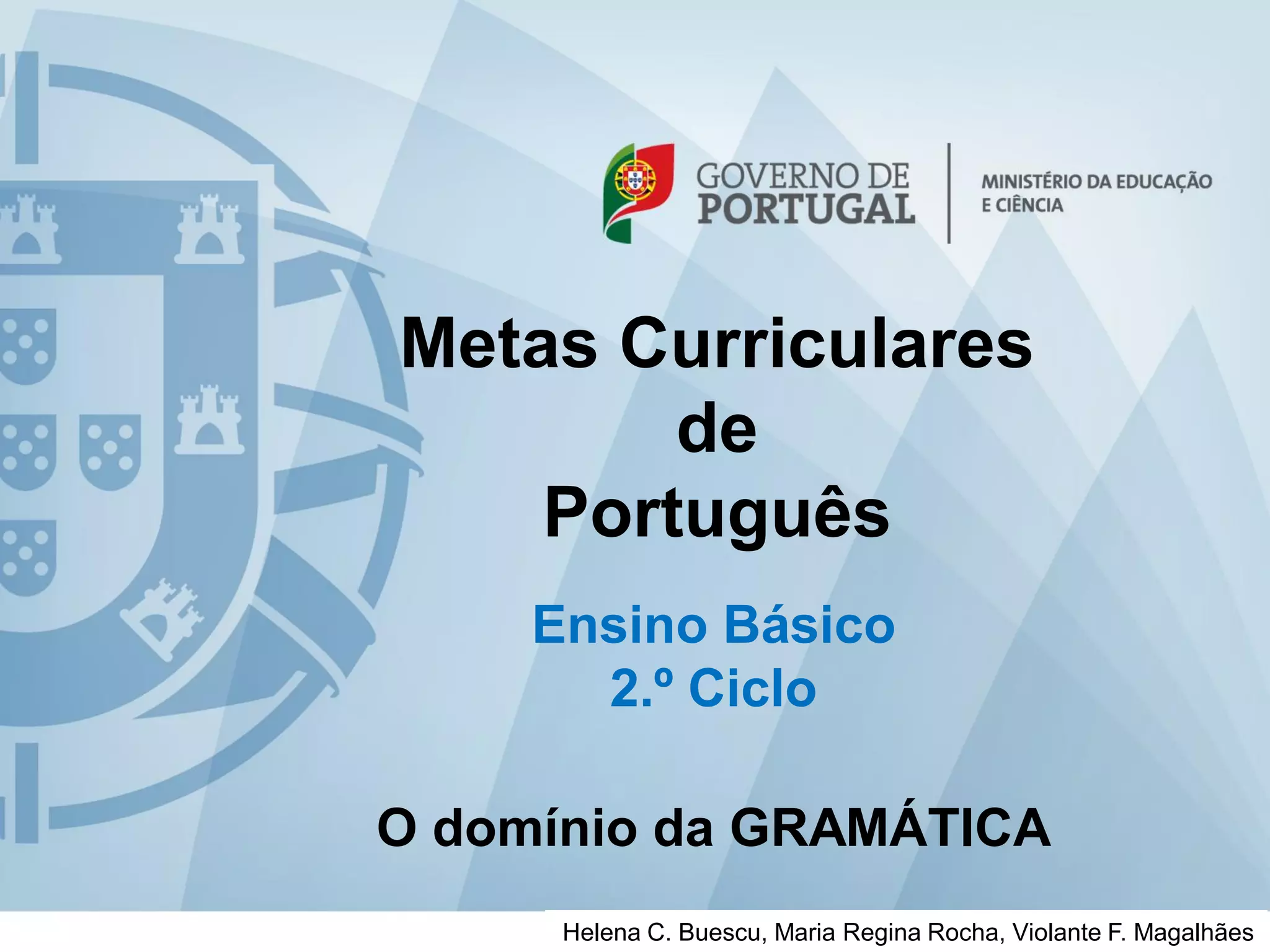 1) O documento apresenta os objetivos e descritores de desempenho para o ensino da gramática portuguesa no 2o ciclo do ensino básico.