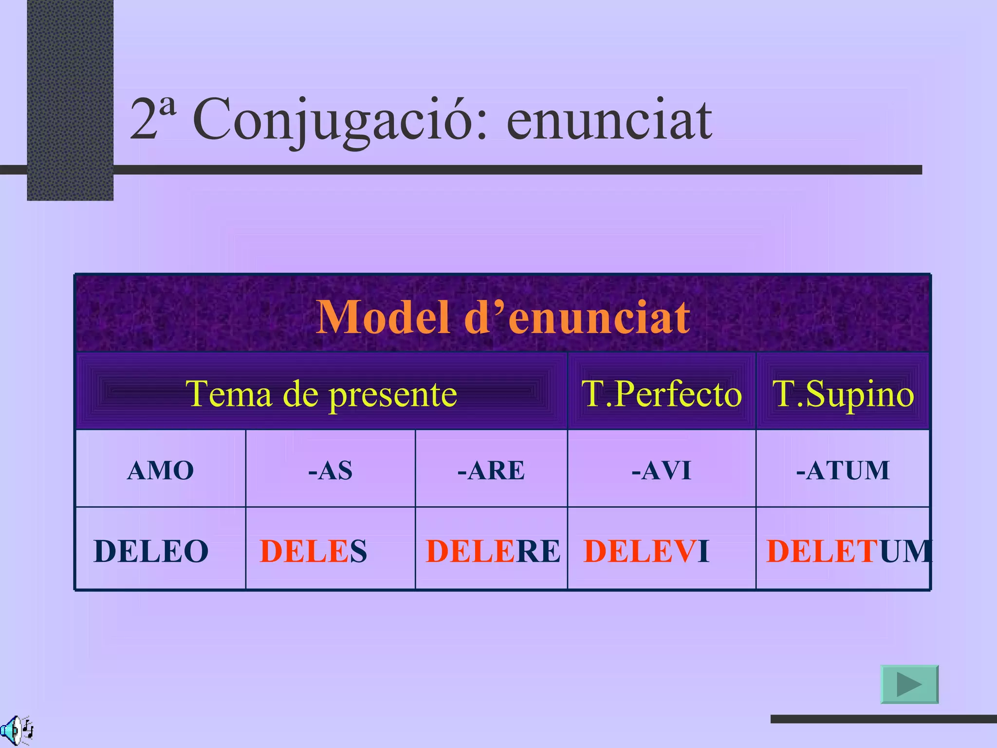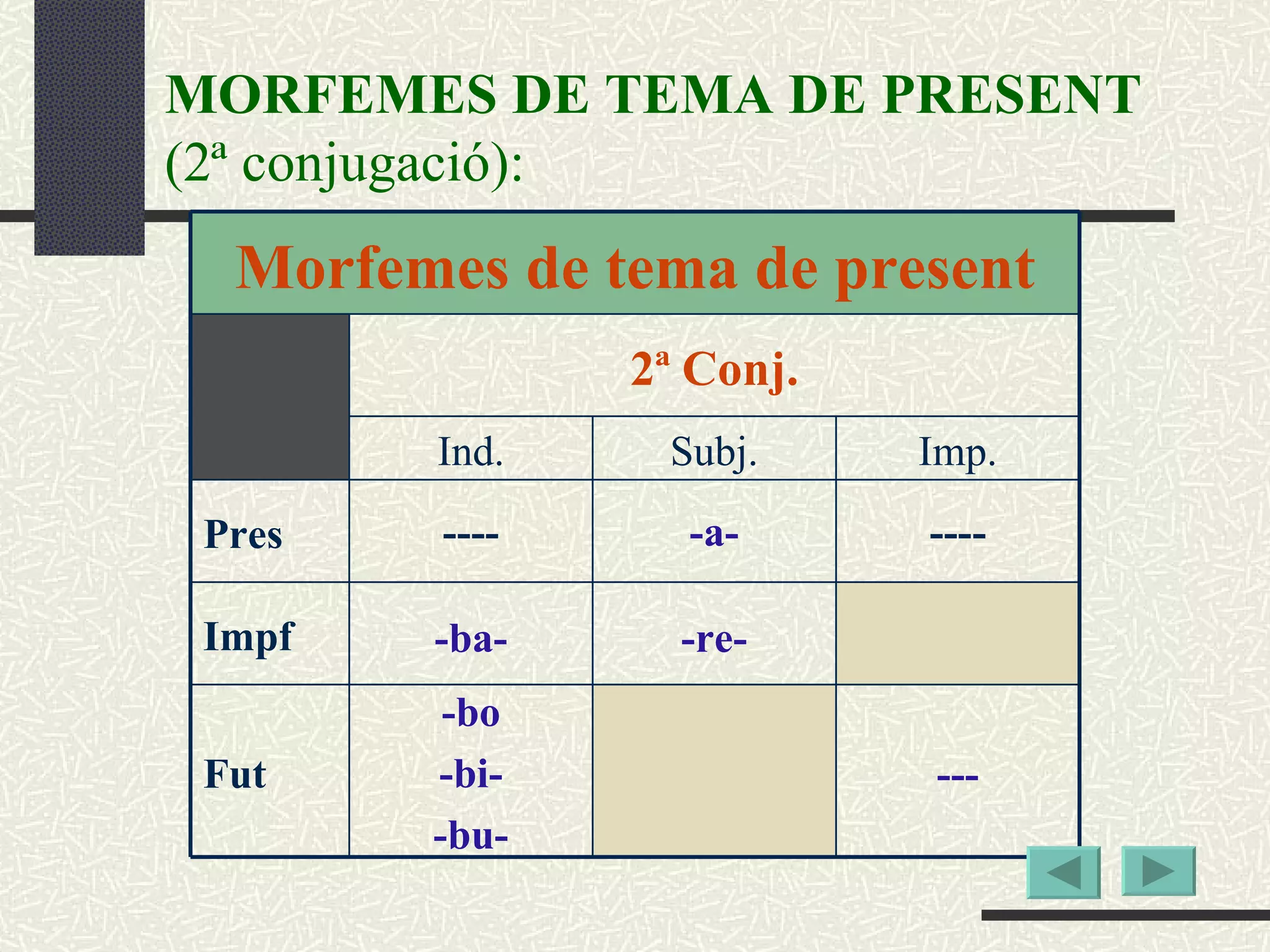 2) São mostrados os morfemas dos temas de presente e perfeito da segunda conjugação.