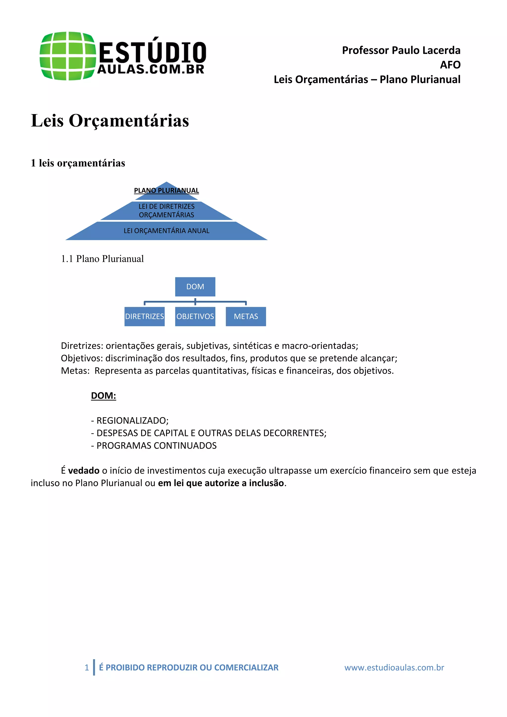 O documento discute o Plano Plurianual (PPA), que estabelece diretrizes, objetivos e metas da administração pública federal de forma regionalizada para despesas de capital, programas continuados e outros itens. O PPA tem duração igual ao mandato do chefe do poder executivo.
