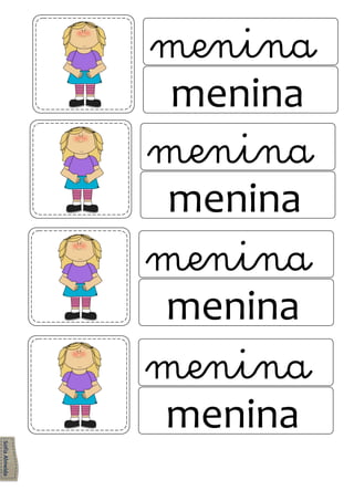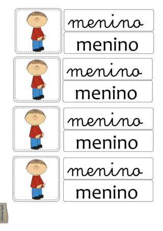 O documento lista repetidamente a palavra "menino" e depois "menina", sugerindo uma comparação entre os gêneros ou algum tipo de contagem.